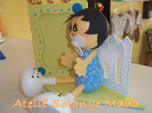 Abajur decorado com e.v.a. e porta-retrato com bebê fofucho