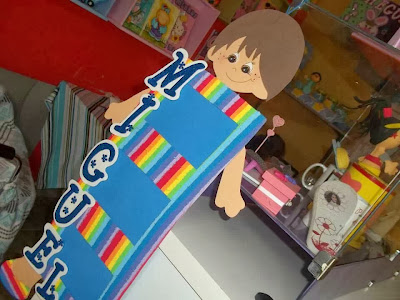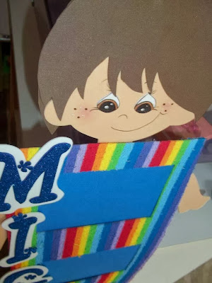 TERMINEEEEII... Lembram da guirlanda que eu havia começado e eu mostrei aqui no blog ontem? Pois é, eu terminei meu trabalhinho agorinha. MATERIAL EVA em cores varidas Arame 18 Cola instantânea Bola de isopor número 60 Ferro de passar para aquecer o EVA Tesoura Enchimento ou algodão Cola Gliter Barbante Estrelinhas de biscuit Caneta permanete Tinta latex azul Eu amei fazer, espero que a mamãe do Enzo ame também, rsrsrs, e...claro espero que vocês também tenham gostado. Qualquer coisa é só comentar tá. Bjuusss da Madá Ahhhhhhhh... Logo,logo trarei novidades, estou preparando a minha lojinha no Elo7 AGUARDEM...